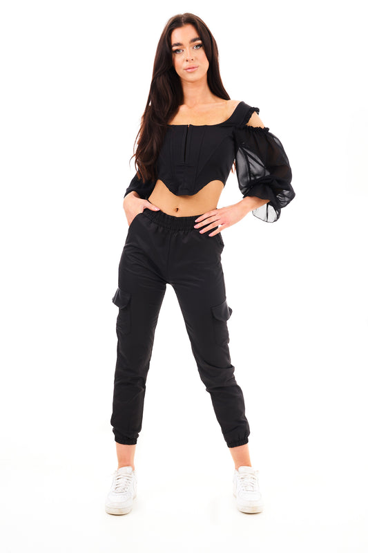 CARGO CUFF PANTS-BLACK