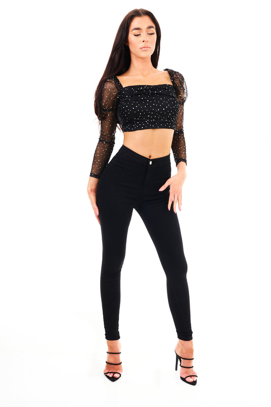 Sold outCROP TOP GLITTER-BLACK