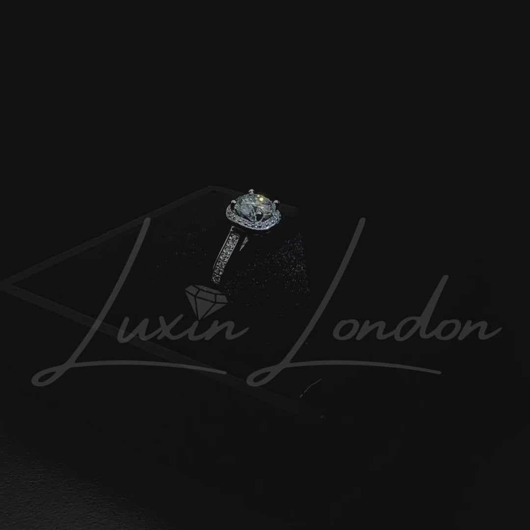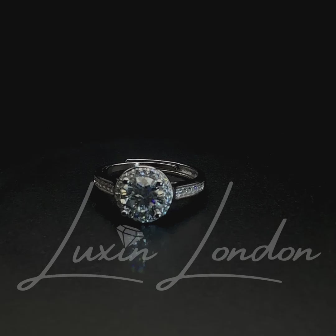 Experience the brilliance of Moissanite in this exquisite ring, featuring a Silver 925 band with lustrous 18k white gold plating. Delicately placed 5A zirconium side stones enhance the dazzling center stone, creating a mesmerizing display of elegance.